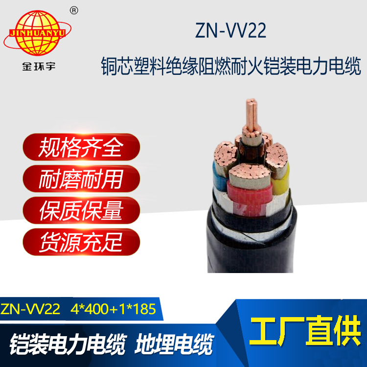 金環宇電線電纜 ZN-VV22-4X400+1X185平方 阻燃耐火電力電纜vv22電纜