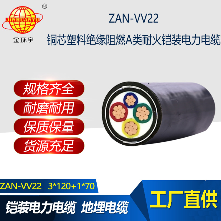 金環(huán)宇電線電纜 vv22電纜ZAN-VV22-3x120+1x70平方 銅芯阻燃耐火電纜