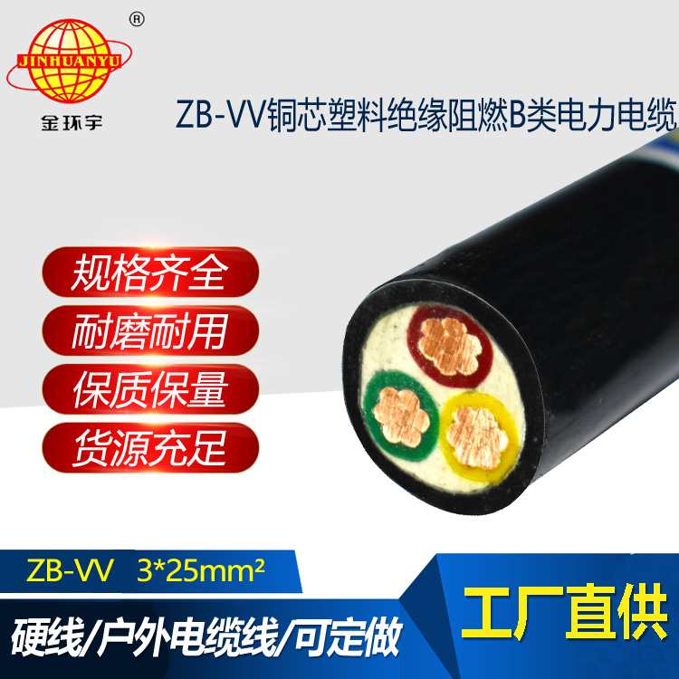 金環宇電線電纜 深圳vv電力電纜ZB-VV 3X25平方b級阻燃電纜