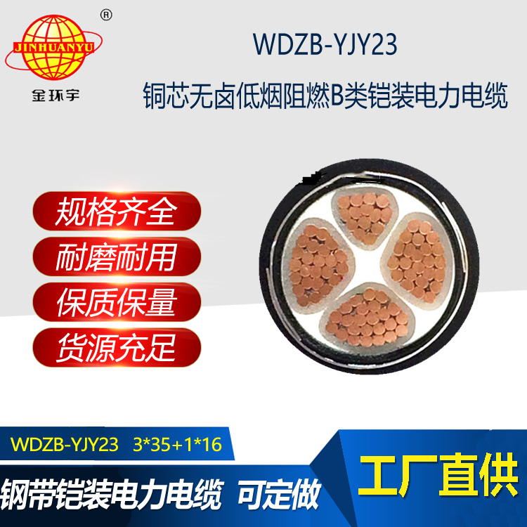 金環宇低煙無鹵阻燃鋼帶鎧裝電纜WDZB-YJY23-3X35+1X16平方