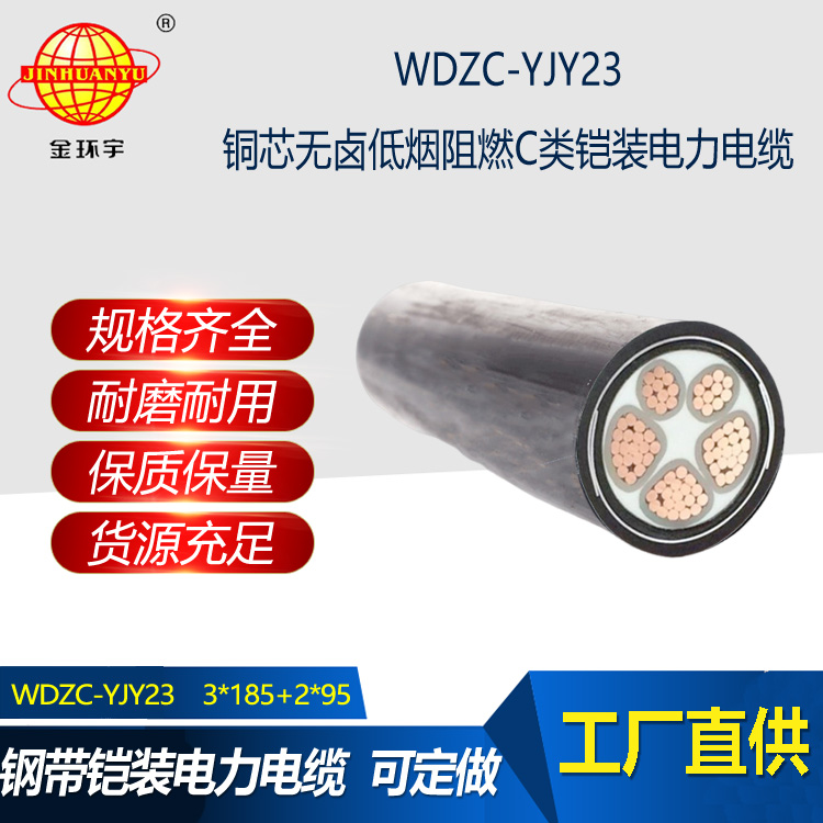 金環宇電線電纜 低煙無鹵阻燃c級電纜 電力電纜 WDZC-YJY23-3X185+2X95