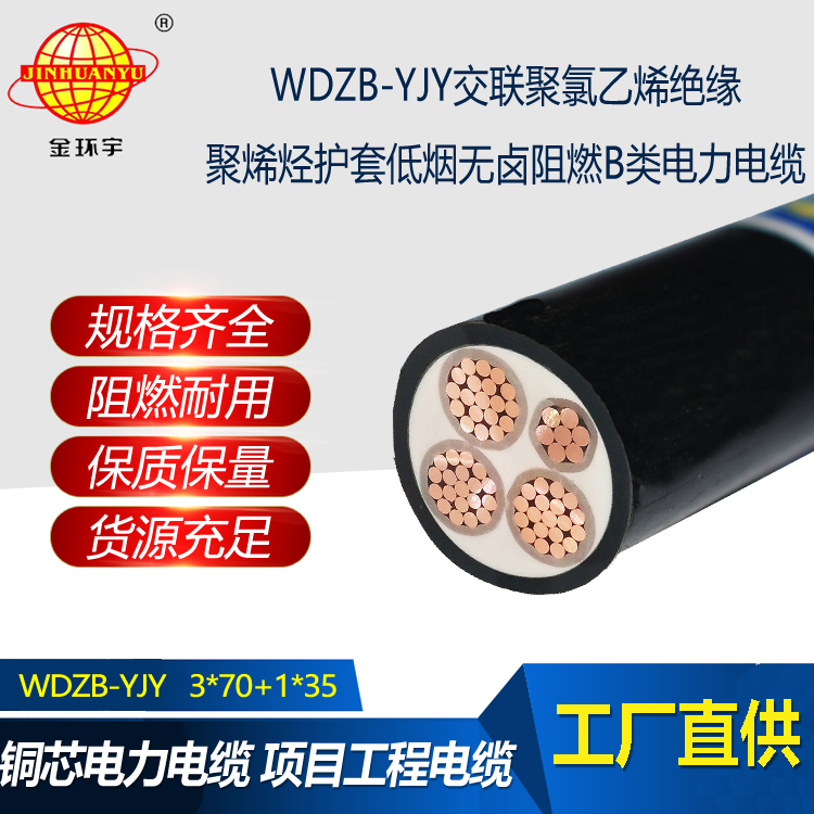 金環宇電線電纜 WDZB-YJY3X70+1X35平方 低煙無鹵阻燃電力電纜廠家