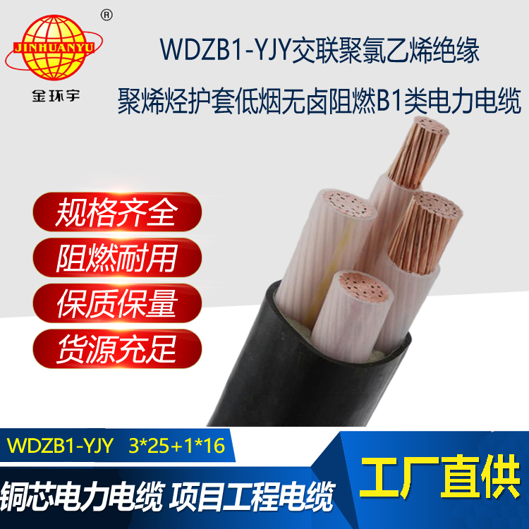 金環(huán)宇電線電纜 交聯(lián)絕緣電纜WDZB1-YJY 3x25+1x16無鹵低煙阻燃B1類電纜