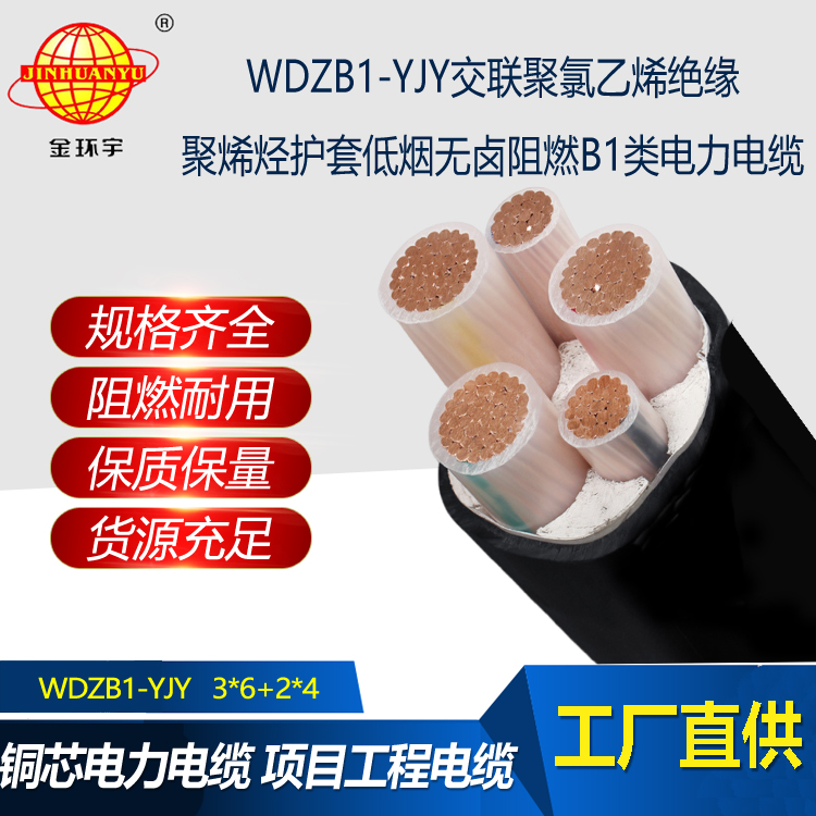金環(huán)宇電線電纜 低煙無(wú)鹵電纜廠WDZB1-YJY 3x6+2x4平方 b1級(jí)阻燃電纜