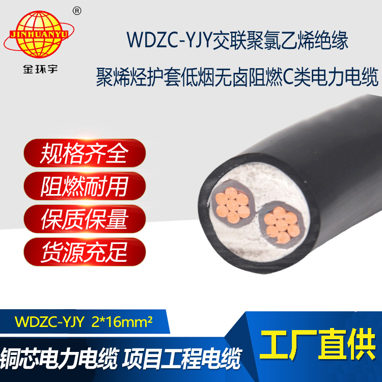 金環宇電線電纜 WDZC-YJY 2X16平方 銅芯 低煙無鹵阻燃電線電纜