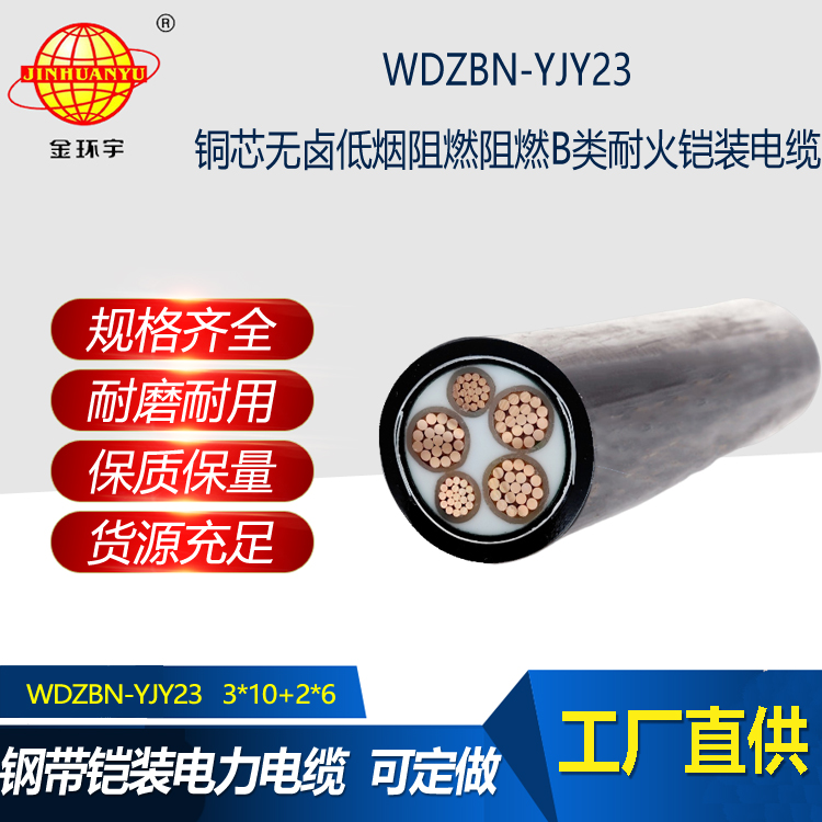 金環宇電線電纜 WDZBN-YJY23-3X10+2X6阻燃b類耐火電纜 低煙無鹵電力電纜