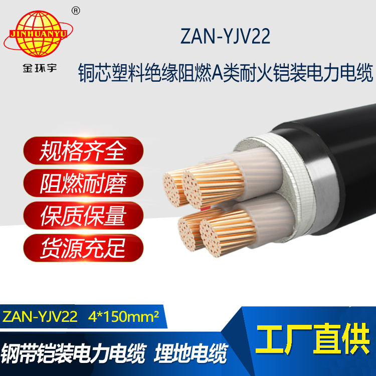 ZAN-YJV22電纜:銅芯交聯(lián)聚乙烯絕緣聚氯乙烯護(hù)套鋼帶鎧裝A類阻燃耐火型電力電纜,