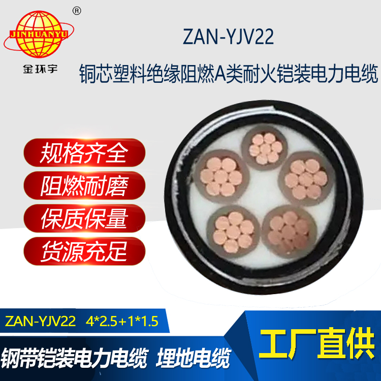ZAN-YJV22電纜:銅芯交聯(lián)聚乙烯絕緣聚氯乙烯護套鋼帶鎧裝A類阻燃耐火型電力電纜,