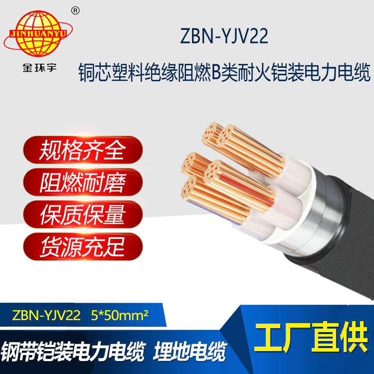 金環宇電纜 yjv22電纜價格 ZBN-YJV22-5X50平方 耐火阻燃鎧裝電纜
