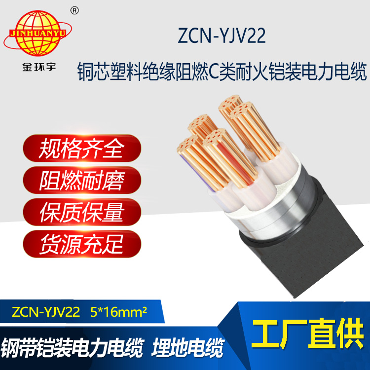 金環(huán)宇電線電纜 阻燃耐火電力電纜ZCN-YJV22-5X16平方 五芯鎧裝電纜